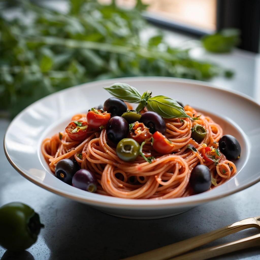 Fiery and flavorful, this arrabbiata spaghetti is a spicy dance of tomatoes, garlic, and olives that leaves you craving another forkful.
