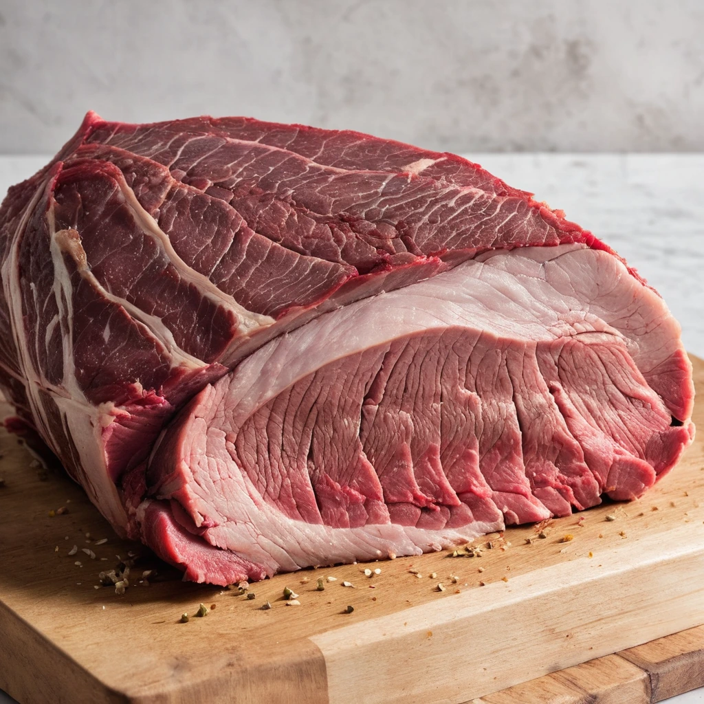 Beef brisket is a cut of meat taken from the lower chest of the cow, a hardworking muscle that results in a tough yet flavorful piece of meat. Traditionally associated with barbecue culture in the United States, especially Texas, brisket is prized for its rich, beefy taste with a marbled texture that renders fat during cooking. The flavor profile is robust and savory, with a depth that intensifies when cooked low and slow. Its texture is initially tough and fibrous, but when properly braised or smoked, it becomes tender and succulent. Cooking brisket requires patience, as prolonged, gentle heat breaks down the connective tissues, transforming it into a melt-in-your-mouth delicacy.