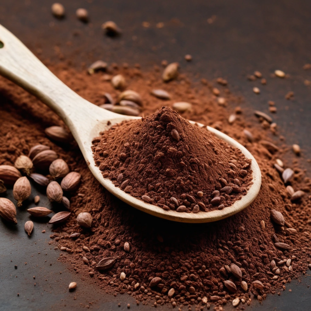 A rich, velvety powder made from roasted cocoa beans, cocoa powder brings a deep chocolate flavor to both sweet and savory dishes. Its aroma is warm and inviting, with notes of earthiness and a touch of bitterness.