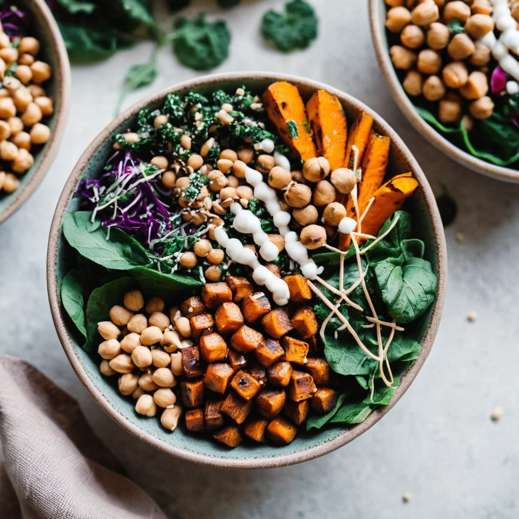 Sweet Potato Chickpea Buddha Bowls with Peanut Dressing