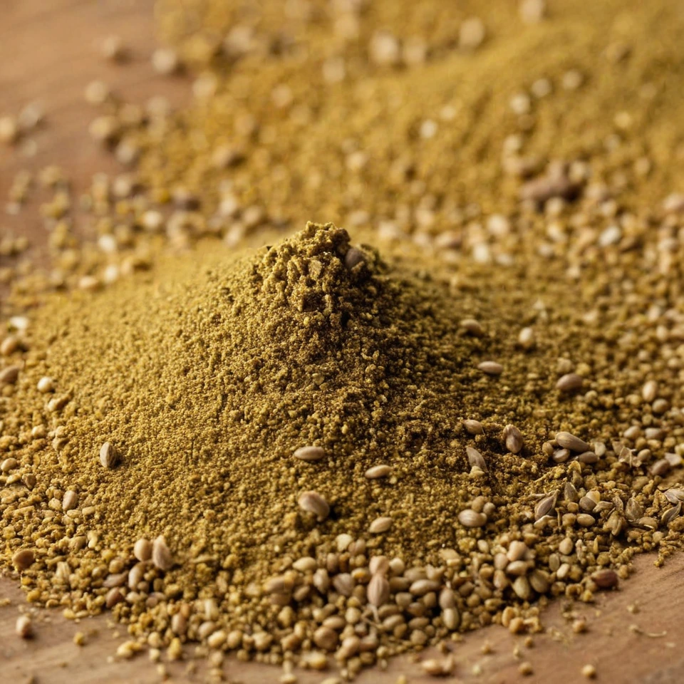 Ground mustard is a fine, yellow powder made from dried and ground mustard seeds. It has a sharp, pungent flavor that mellows when cooked, adding depth and spice to dishes.