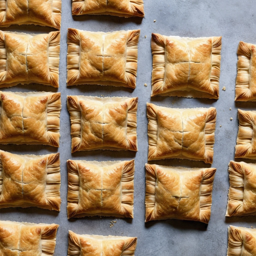 Puff pastry sheets are a versatile and flaky pastry dough made from layers of butter and dough folded repeatedly to create hundreds of thin layers. Originating in 17th-century France, this dough is prized for its ability to rise dramatically when baked, resulting in a light, airy texture. The flavor is rich and buttery, with a subtle sweetness that makes it a favorite for both savory and sweet applications. Its texture is crisp and flaky, offering a satisfying crunch with each bite. In cooking, puff pastry is known for its ability to encase fillings without becoming soggy and to brown beautifully, making it ideal for both appetizers and desserts.