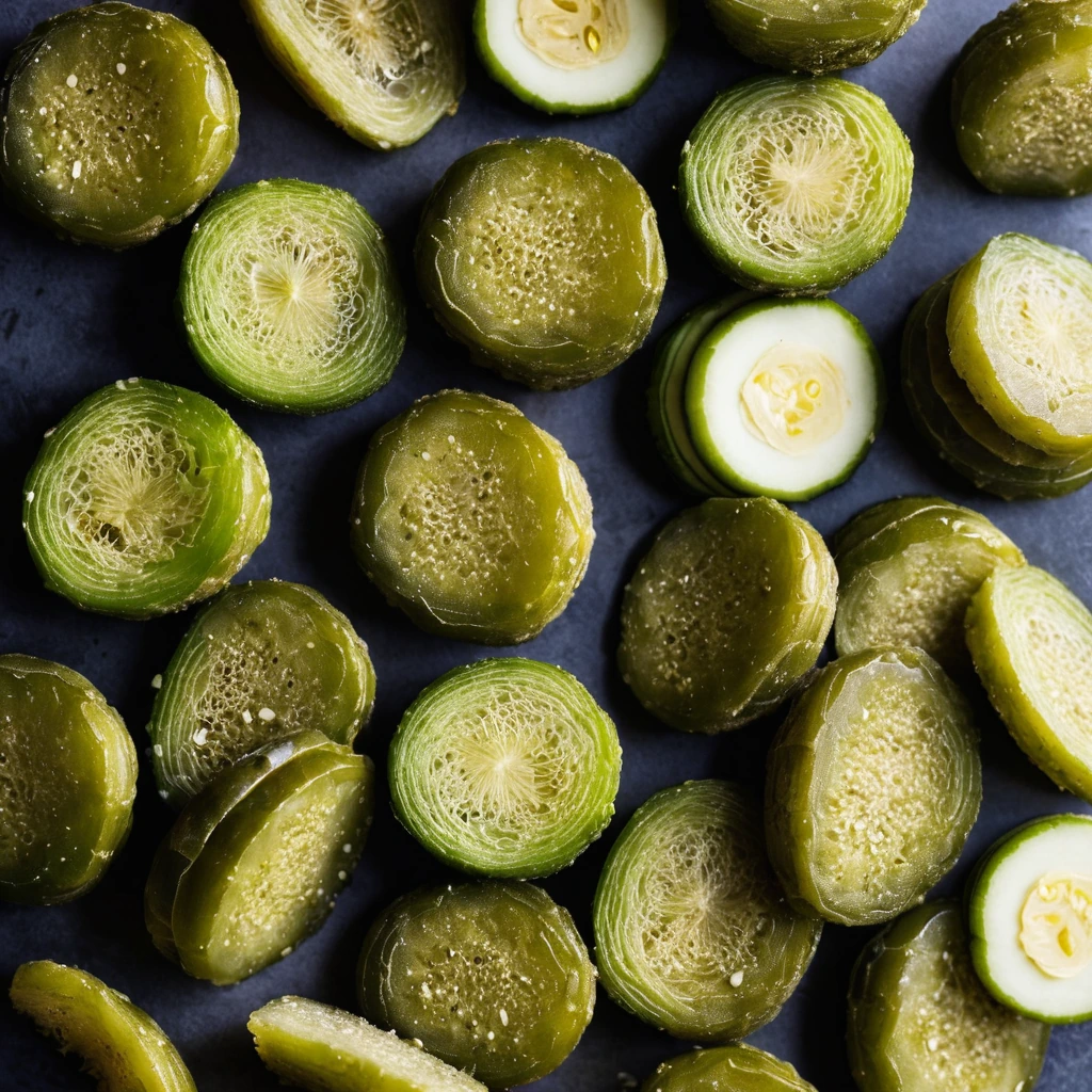 Bread and butter pickles are a type of sweet and tangy pickle made primarily from cucumbers, vinegar, sugar, and butter or vegetable oil. Originating in the United States, they are a staple in American cuisine, often served alongside sandwiches and burgers. These pickles have a distinctive flavor profile that balances sweetness from the sugar with a tangy kick from the vinegar, while the butter or oil contributes a subtle richness. Their texture is crisp and firm, offering a satisfying crunch with each bite. In cooking, bread and butter pickles add a delightful contrast to both savory and sweet dishes, as they maintain their texture well and infuse dishes with their unique flavor.