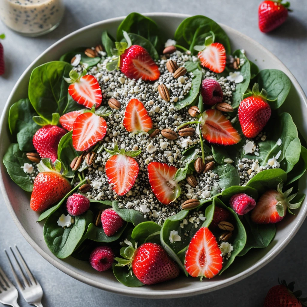 A vibrant mix of fresh strawberries, tender spinach, and a tangy poppyseed dressing that'll have you craving seconds.
