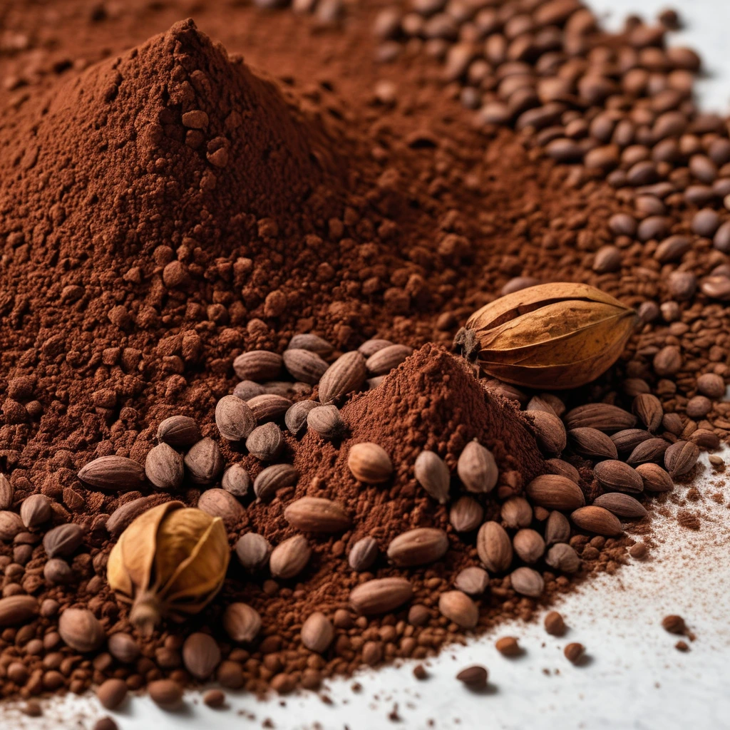 A deeply rich and aromatic powder made from roasted cocoa beans, stripped of their fat and sugar, offering a pure chocolate essence.