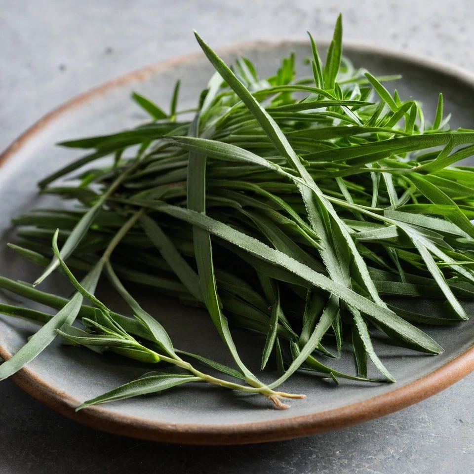 Fresh tarragon is a fragrant herb with delicate, licorice-like flavor. Its vibrant green leaves add a unique taste to dishes, making it a favorite in French cuisine.