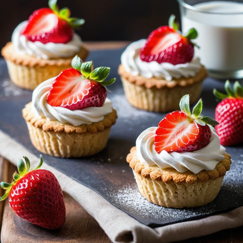 Golden, buttery biscuit cups stuffed with sweet, juicy strawberries and a whisper of whipped cream make for a delightful dessert.