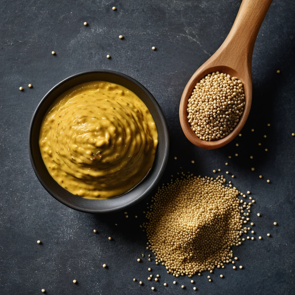 A robust and textured condiment with a harmonious blend of mustard seeds and tangy vinegar, offering a delightful crunch and a warm, pungent kick.