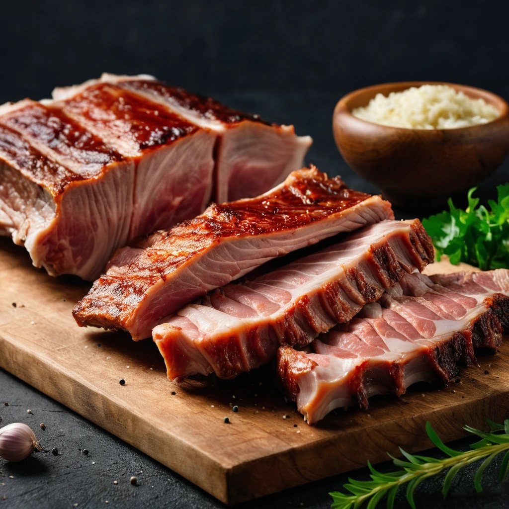 Succulent and tender, pork ribs are a carnivorous delight with a rich, savory flavor that melts in your mouth.
