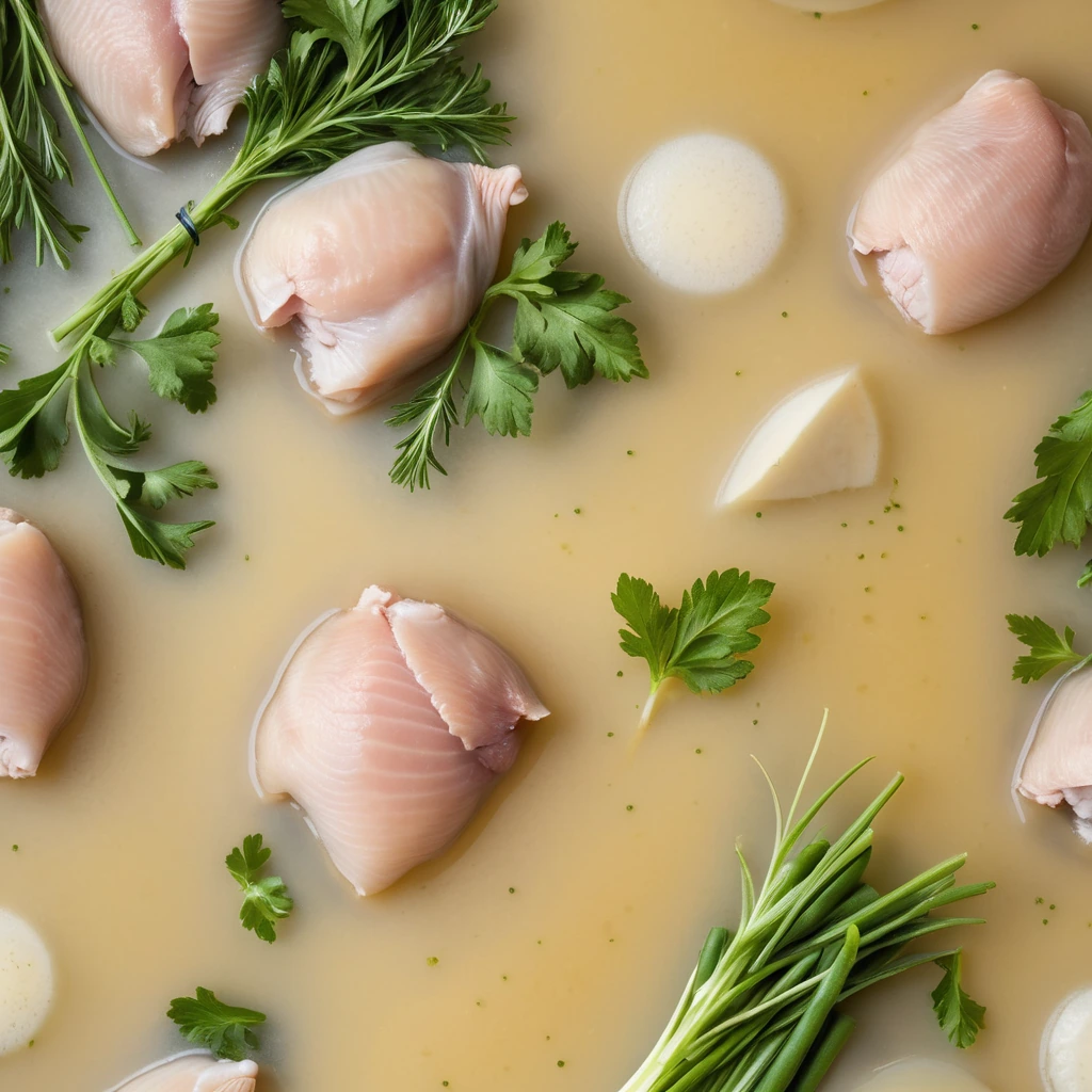 A gently simmered, golden elixir that captures the essence of tender chicken and aromatic vegetables, offering a rich, savory flavor without the extra salt.