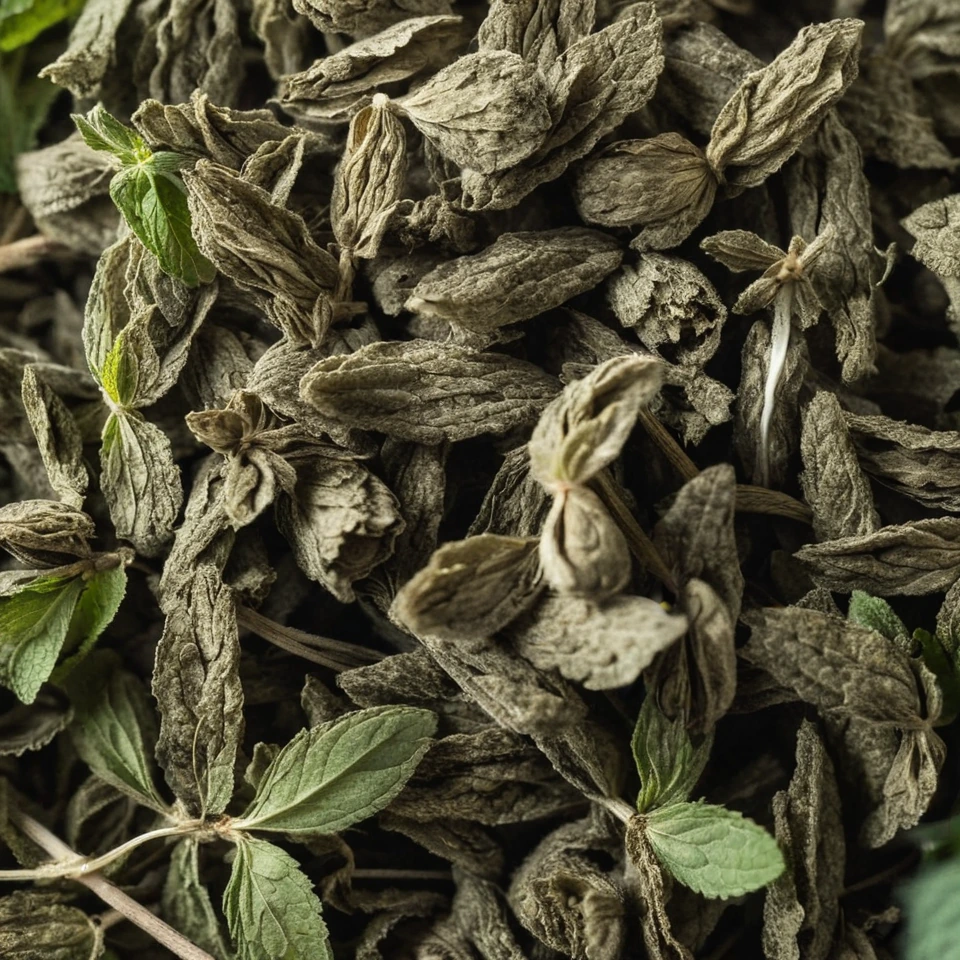 Dried mint is a fragrant herb that offers a refreshing and slightly sweet flavor. It's harvested from the mint plant and dried to preserve its essence, making it a versatile ingredient in both sweet and savory dishes.