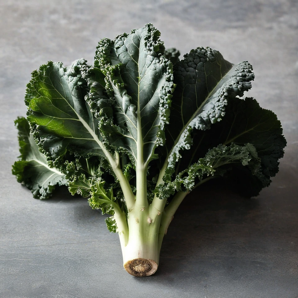 Kale is a leafy green vegetable known for its nutritional benefits, including high levels of vitamins A, C, and K, as well as antioxidants. Its sturdy leaves have a slightly bitter, earthy flavor.