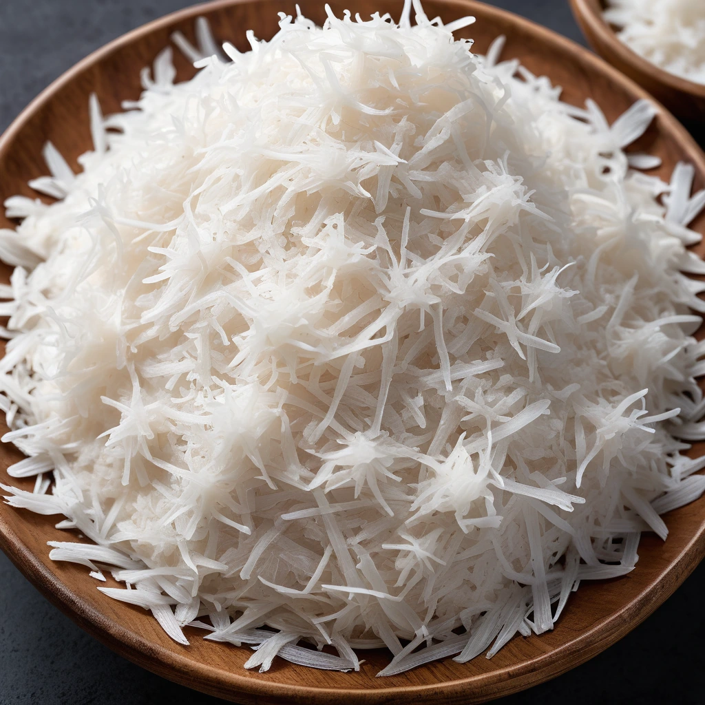 A tropical treasure, sweetened shredded coconut boasts tender, flaky strands kissed with a touch of sugar, offering a delightful balance of sweetness and nutty richness.
