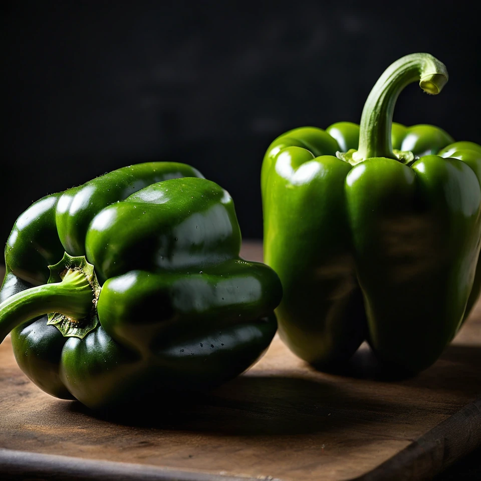 Green bell peppers are crisp, slightly bitter, and crunchy vegetables that add a fresh, vibrant flavor to dishes. They are harvested before fully ripening, which gives them their distinct green color and firmer texture.