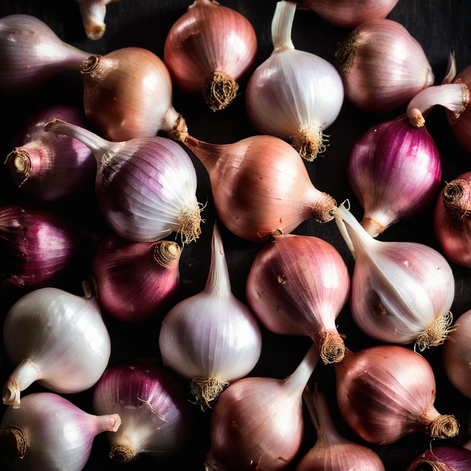 Shallots are a type of onion with a mild, sweet flavor and a subtle hint of garlic. They are prized for their delicate taste and are often used in fine cooking.