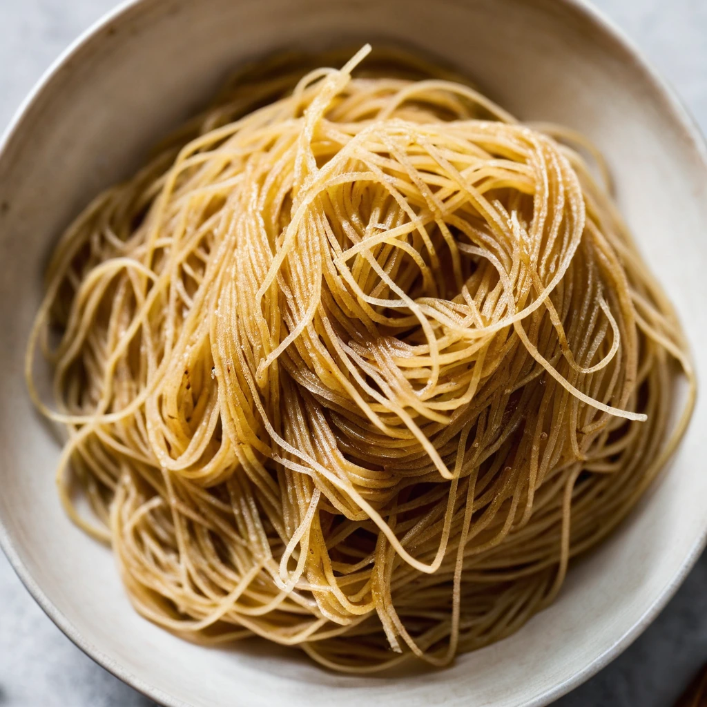 Golden strands of durum wheat semolina, dried to perfection, ready to transform into a comforting bowl of twirled pasta.