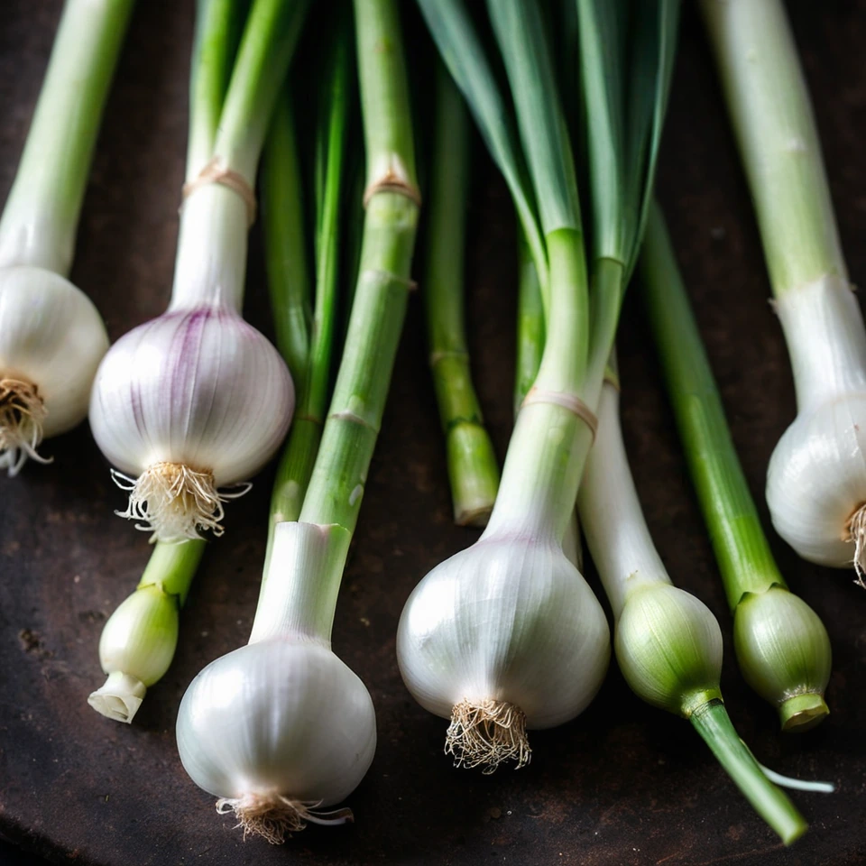 Scallions, also known as green onions or spring onions, are long, slenderAllium vegetables with a mild, sweet flavor. They feature a white base and green leaves, offering a fresh, onion-like taste without the sharpness of mature onions.