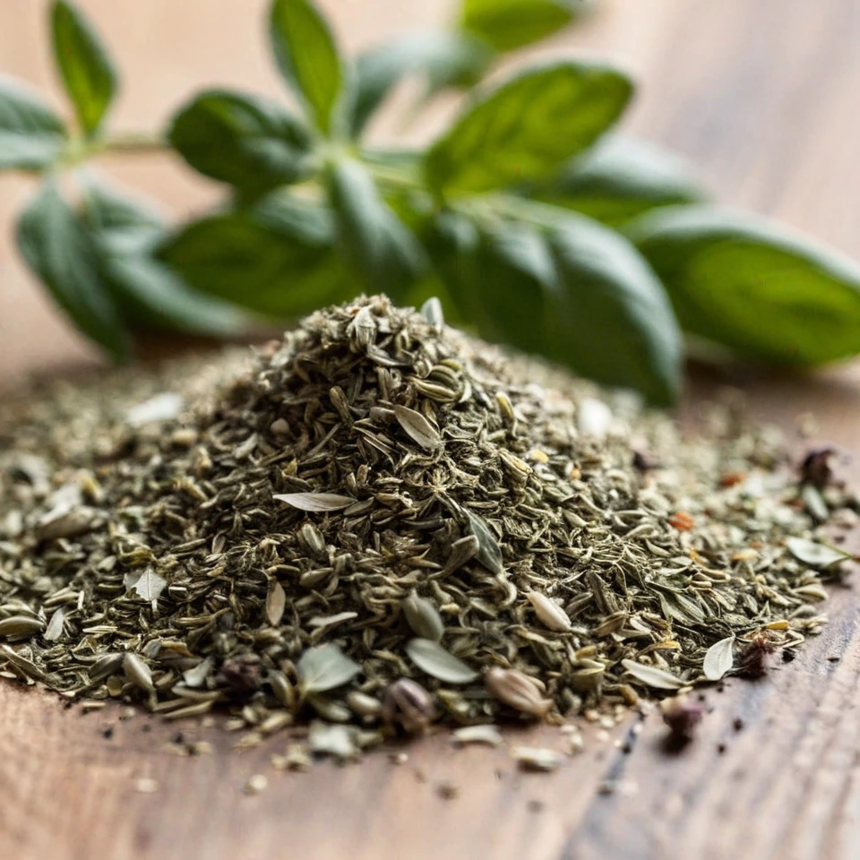 A fragrant blend of dried herbs commonly used in Italian cuisine, typically including basil, oregano, thyme, rosemary, and marjoram.