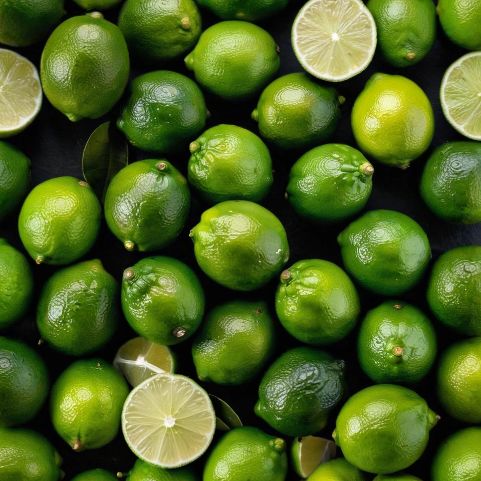 Limes are small, green citrus fruits known for their tart, acidic flavor and aromatic zest. They are a staple in many cuisines, adding brightness and tanginess to dishes.
