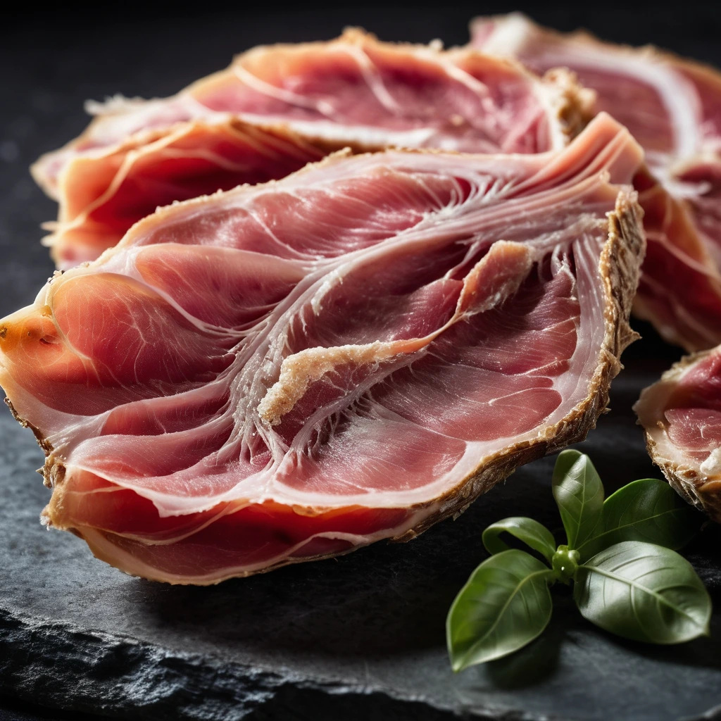 Prosciutto is a dry-cured ham that originates from Italy, known for its delicate, melt-in-your-mouth texture and rich, savory flavor. Each thin slice is a burst of umami, with a hint of nuttiness and a touch of saltiness that dances on your tongue.