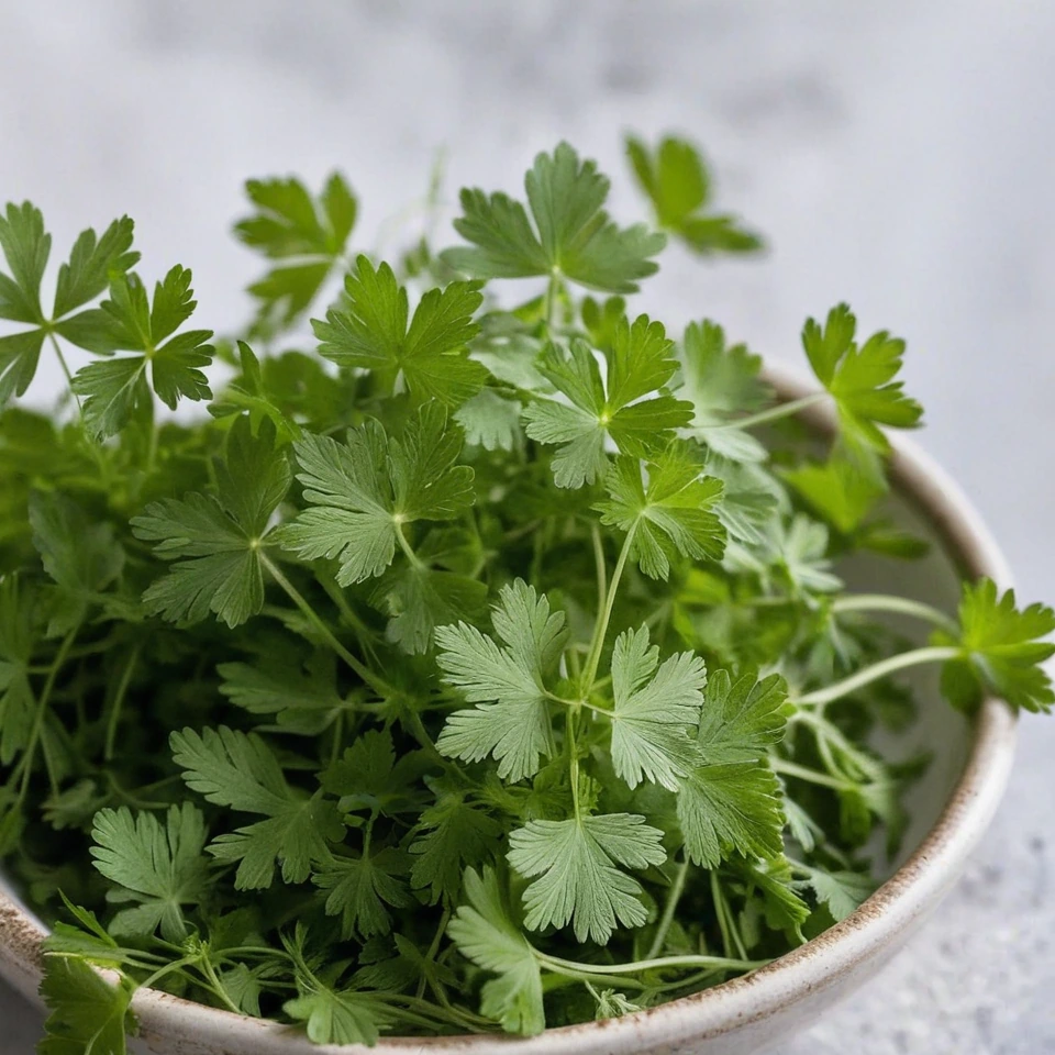 Fresh chervil is a delicate herb with a mild anise-like flavor and a hint of parsley. Its feathery green leaves add a fresh, aromatic touch to dishes.