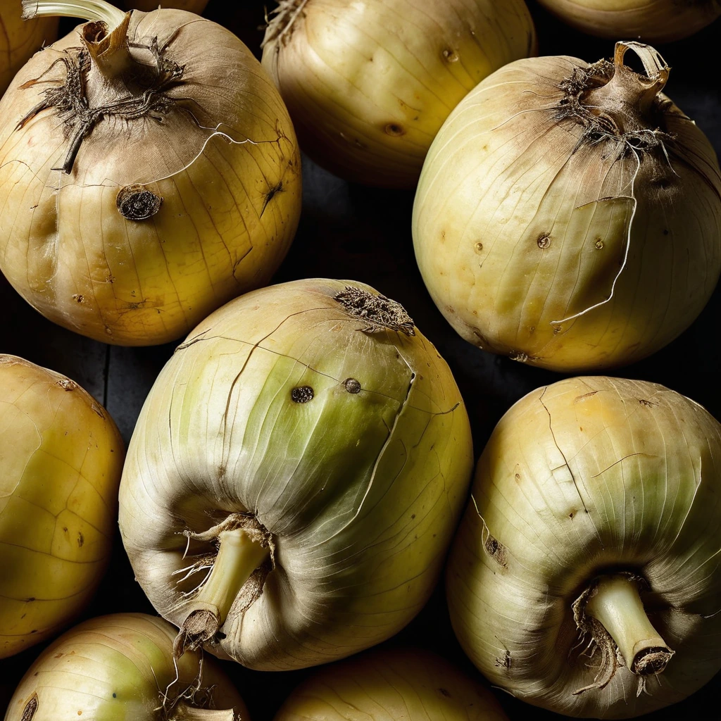 Rutabaga, often referred to as Swedish turnip, is a root vegetable that is a cross between a cabbage and a turnip. Originating in northern Europe, it has been cultivated for centuries and is a staple in many traditional dishes. Its flavor is earthy and slightly sweet with a hint of bitterness, reminiscent of a turnip but milder and more complex. The texture is firm and dense, becoming tender and velvety when cooked. In culinary applications, rutabaga holds its shape well during roasting and mashing, absorbs flavors from seasonings and broths, and adds a subtle sweetness to dishes. Its versatility makes it a favorite in hearty soups, stews, and roasted vegetable medleys.