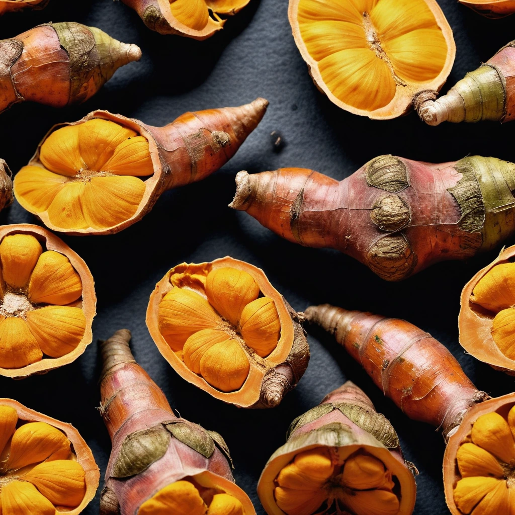 Fresh turmeric root is the unprocessed rhizome of the Curcuma longa plant, a member of the ginger family. Originating in Southeast Asia and South India, turmeric has been used for millennia in both culinary and medicinal traditions. Its flavor is earthy and slightly peppery with a subtle sweetness, reminiscent of mustard but milder. The aroma is warm and musky. When eaten raw, its texture is firm and waxy, but it softens considerably when cooked. Fresh turmeric behaves well in cooking, infusing dishes with its vibrant yellow color and distinctive taste. It is often grated or minced before use and is known to release its full flavor when gently simmered or roasted.