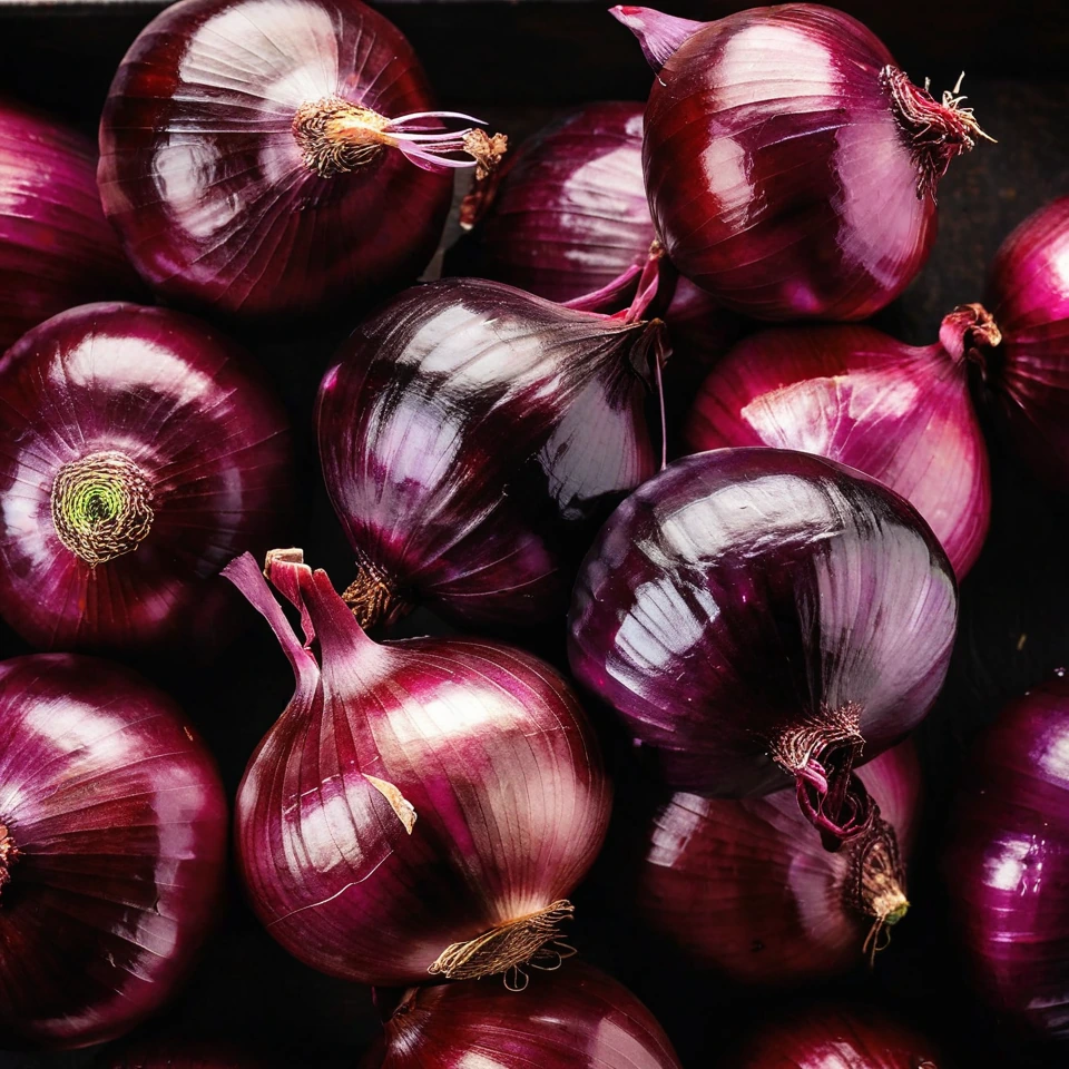 Red onions are a type of bulb onion known for their vibrant purple-red skin and white flesh. They have a sharp, slightly sweet flavor that mellows when cooked, making them versatile for both raw and cooked dishes.