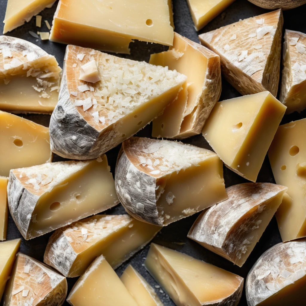 A nutty, salty, and hard Italian cheese with a granular texture that shatters into sharp, savory flakes.