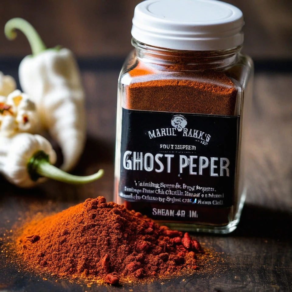 Ghost pepper powder delivers an intense, fiery heat with a fruity, smoky aroma that builds slowly on the palate. Originating from India and known scientifically as Bhut Jolokia, it boasts a Scoville rating that can exceed one million units. Its fine, dusty texture disperses easily, making it a potent spice for those who crave extreme heat. Valued for its ability to add a searing kick without overwhelming other flavors, it's a favorite in adventurous cuisines.