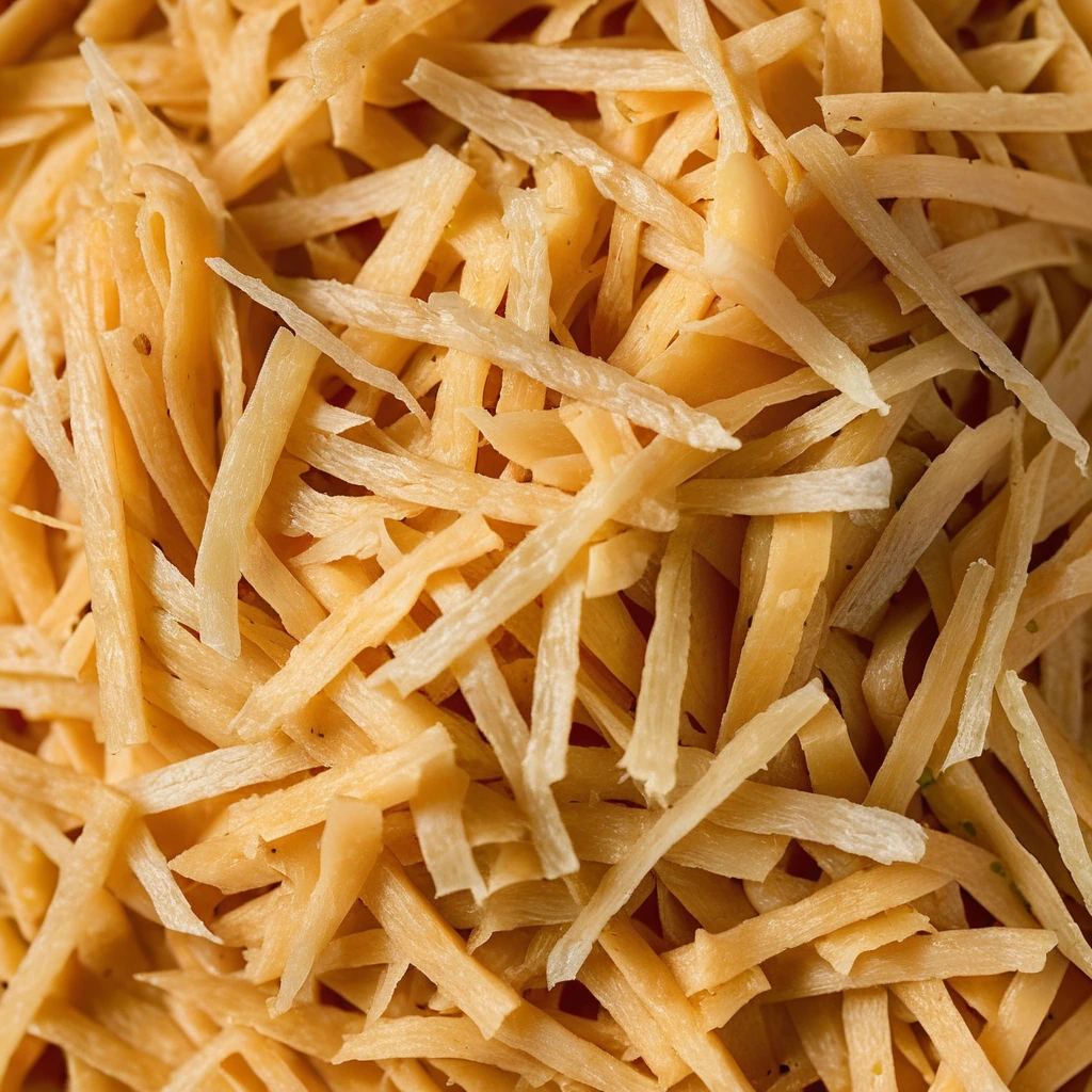 A beloved kitchen staple, shredded cheddar cheese boasts a sharp, tangy flavor and a smooth, melt-in-your-mouth texture. Its vibrant orange hue and irresistible aroma bring warmth and comfort to any dish.