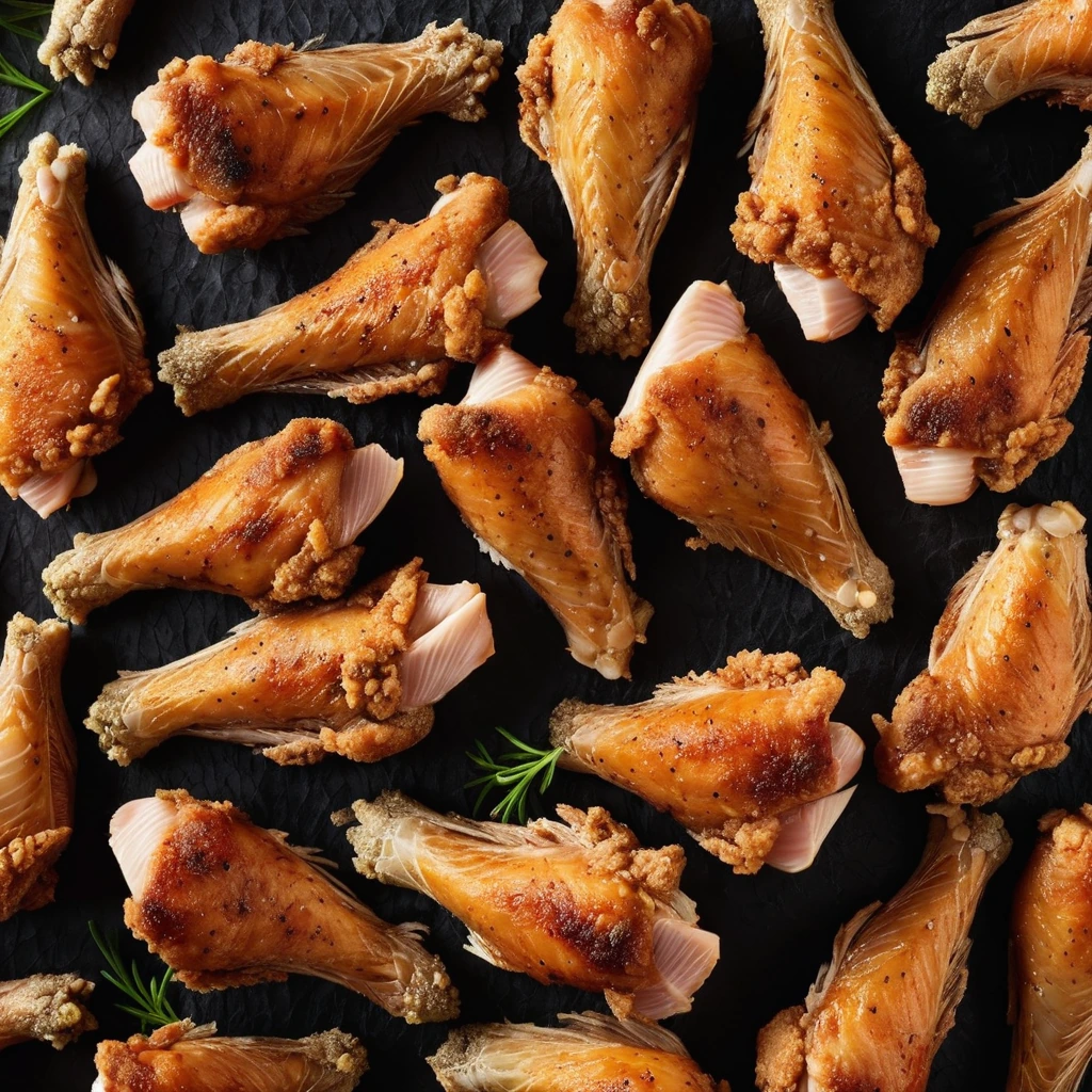 Succulent and juicy, chicken wings boast a rich, savory flavor that's irresistible. Whether crispy from the fryer or smoky from the grill, their tender meat and satisfying crunch make them a beloved treat.