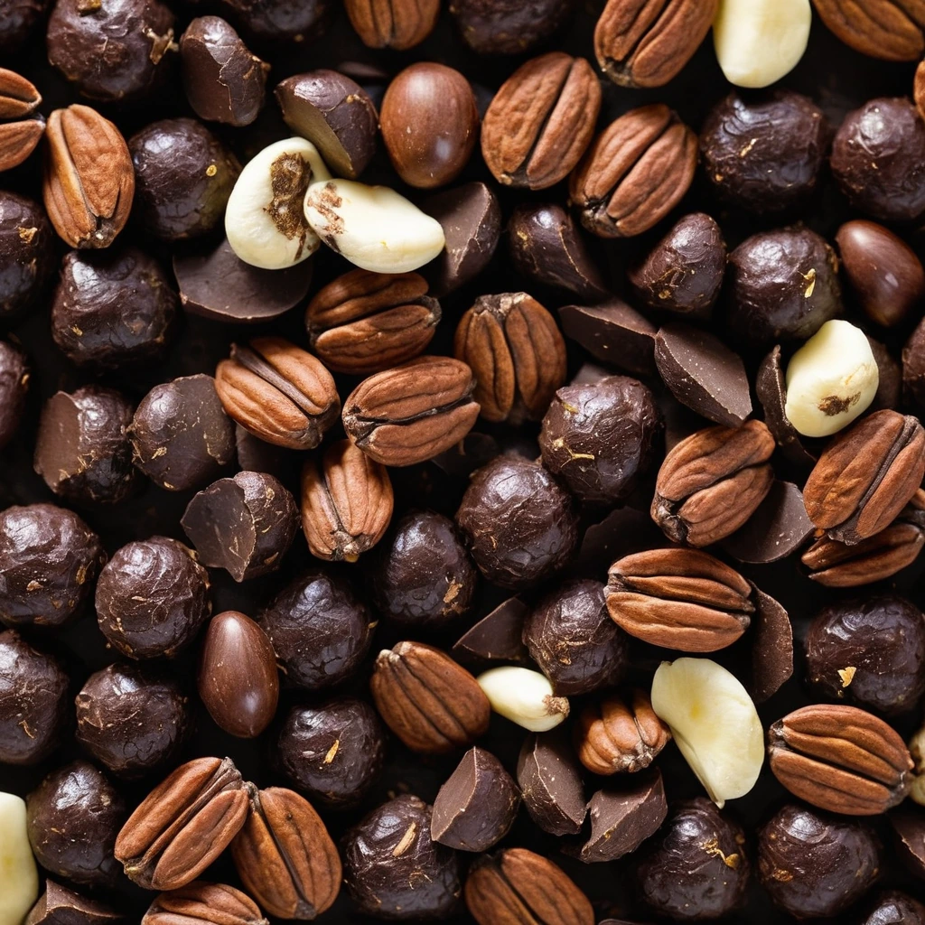 Trail mix with chocolate is a popular snack comprised of a blend of dried fruits, nuts, seeds, and chocolate pieces. Originating in the United States, it has become a staple for hikers and outdoor enthusiasts due to its portability and energy-boosting properties. The flavor profile is a delightful balance of sweet, salty, and sometimes tangy notes, depending on the mix's specific components. The texture is a mix of chewy dried fruits, crunchy nuts and seeds, and the smooth, melt-in-your-mouth quality of chocolate. In cooking, trail mix with chocolate is often used as a topping for yogurt or oatmeal, adding a satisfying crunch and bursts of sweetness. Its versatility allows it to be incorporated into baked goods, where it contributes both texture and flavor without losing its integrity.