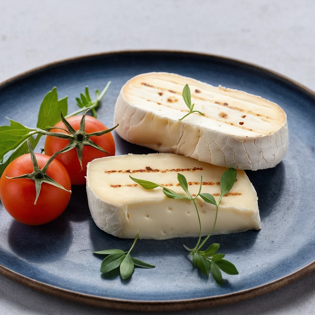 Halloumi cheese is a semi-hard, brined cheese traditionally made from a blend of goat's and sheep's milk, with some versions incorporating cow's milk. Originating from the Mediterranean island of Cyprus, it holds a unique place in Cypriot cuisine and is enjoyed worldwide. Its flavor is mild yet salty, with subtle tangy and savory notes that become more pronounced when cooked. Halloumi boasts a distinctive squeaky texture when fresh, turning into a golden, crispy exterior when pan-fried, while maintaining a soft, chewy interior. Its high melting point allows it to retain its shape when heated, making it ideal for grilling or frying without becoming greasy or losing structure.