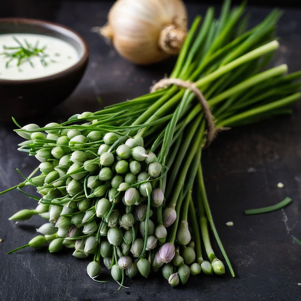Fresh chives are a member of the onion family, known for their delicate, mild onion flavor and vibrant green color. They add a fresh, subtle kick to dishes and are often used as a garnish or mixed into recipes.