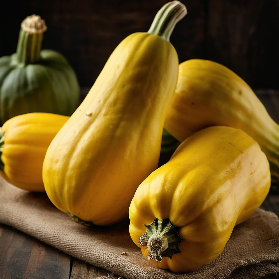 Yellow squash is a summer squash with a tender, edible skin and a mild, slightly sweet flavor. Its cylindrical shape and vibrant yellow color make it a popular choice for a variety of dishes.