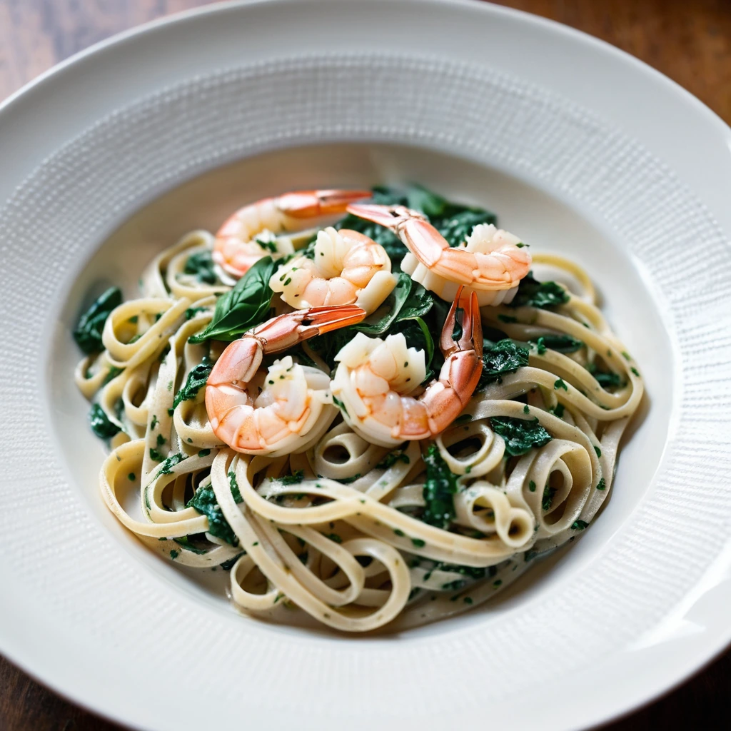 Succulent shrimp and fresh spinach mingle in a creamy white wine sauce, twirled into perfectly al dente linguine.