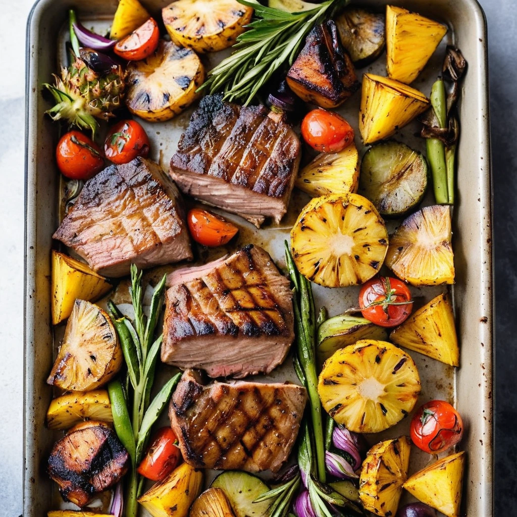 Pork and Pineapple BBQ Sheet Pan Supper