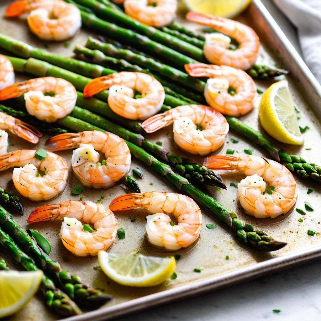 Bright and zesty, this sheet pan dinner is a burst of sunshine with tender shrimp and crisp asparagus in a luscious garlic butter sauce.