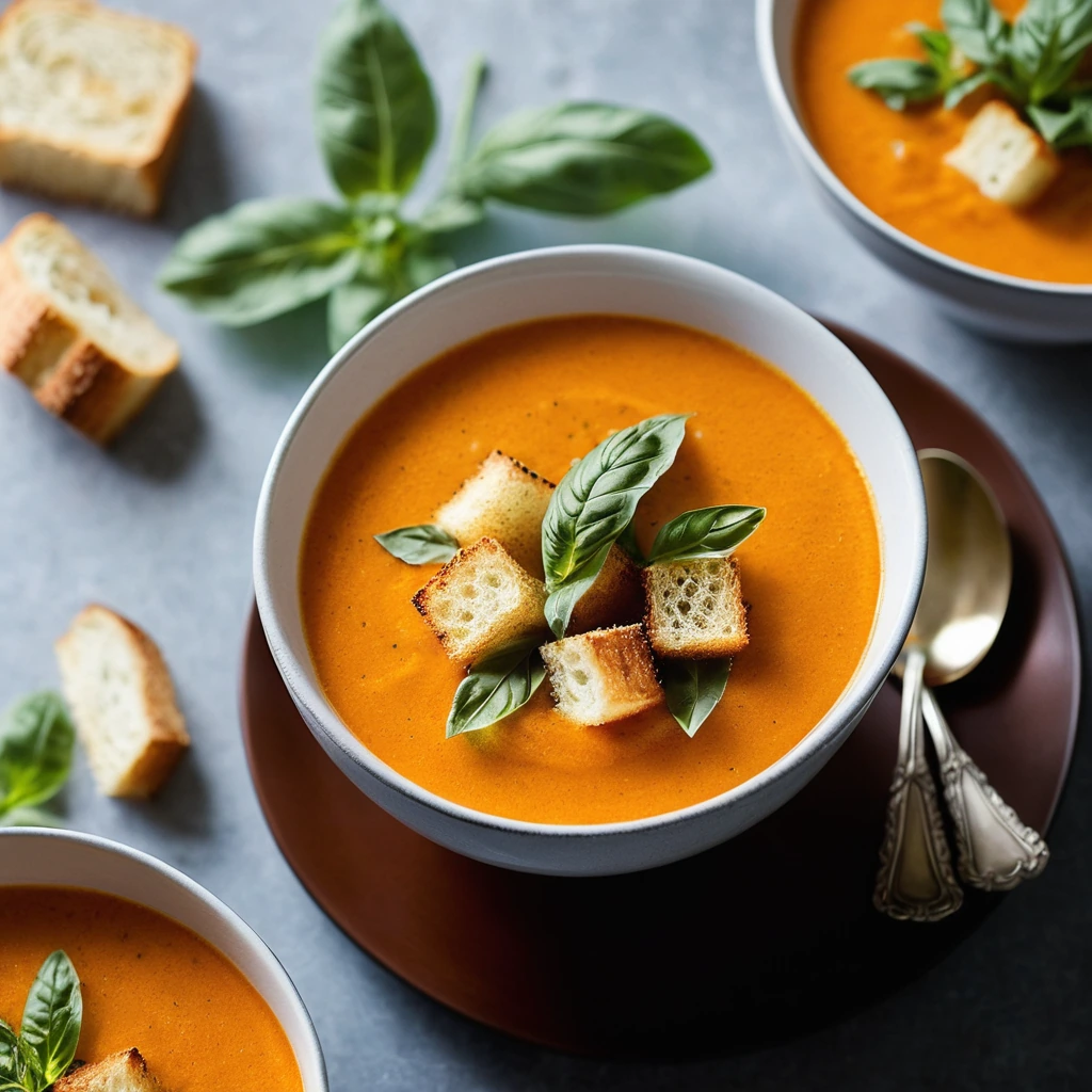 Roasted Garlic and Tomato Basil Soup with Croutons