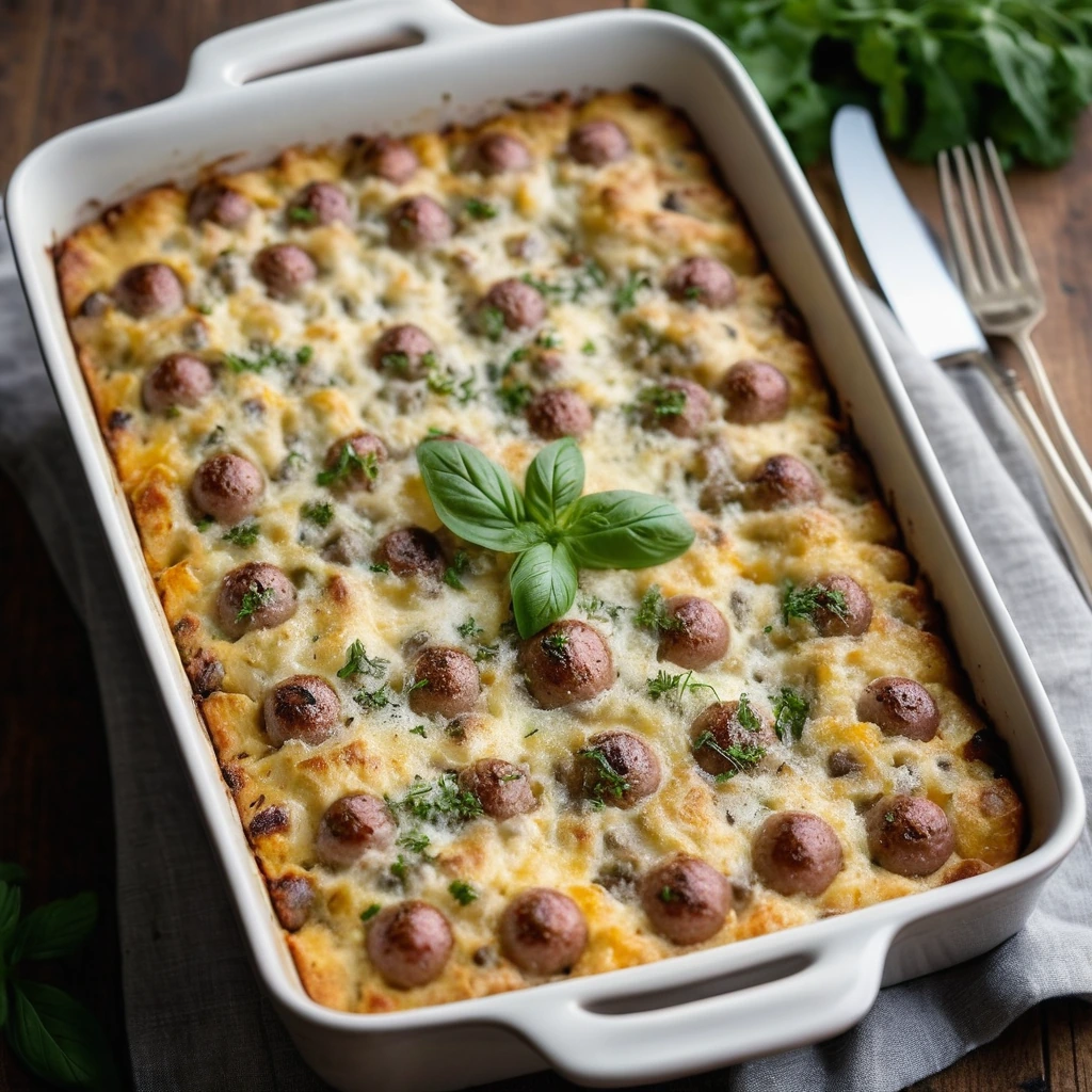 This hearty casserole combines savory sausage, crispy potatoes, and melty cheese into a golden, bubbly brunch masterpiece.
